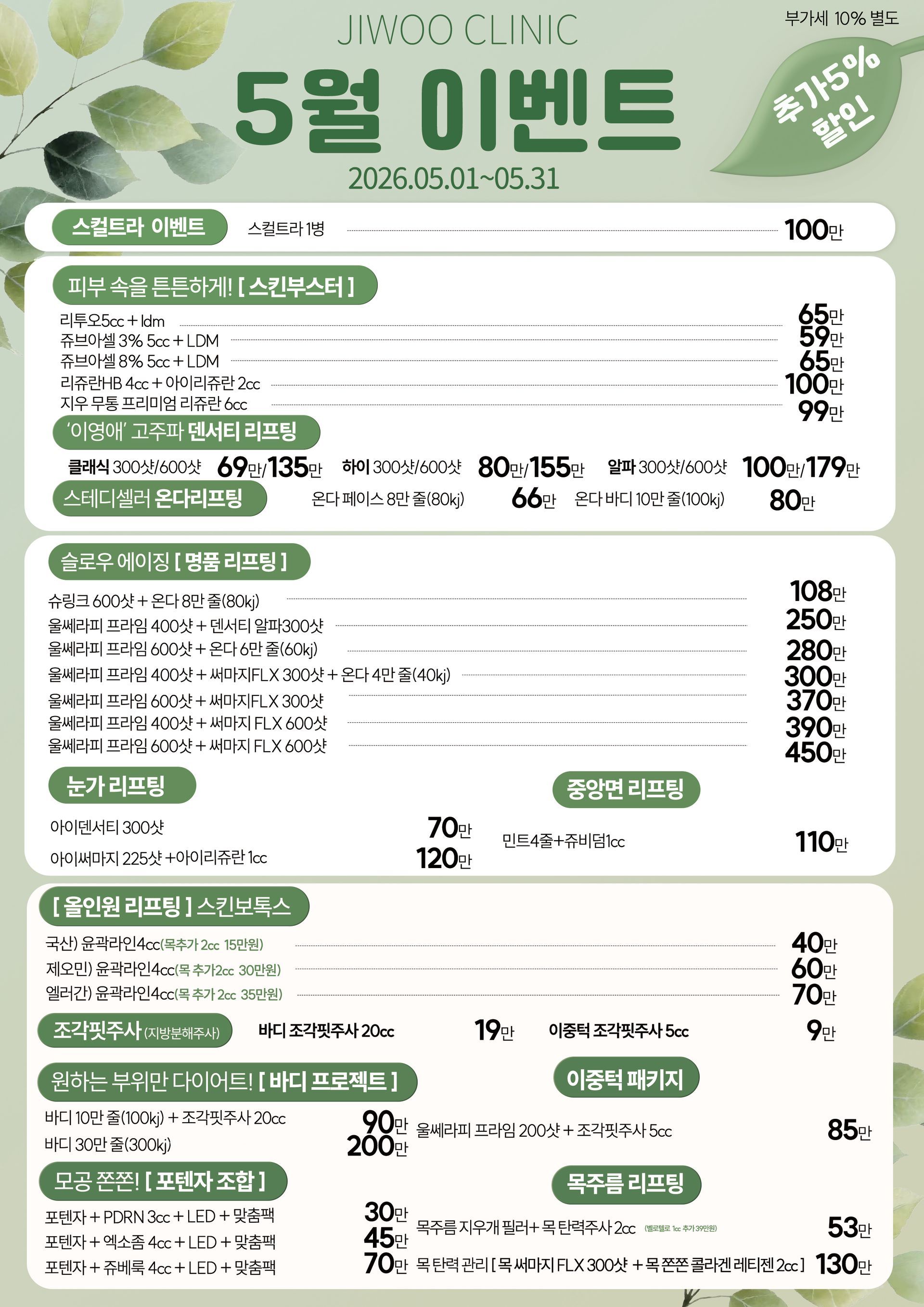 The cost of Skin Vive depends on the treatment area and individual skin needs. Visit Gangnam Jiwoo Skin Clinic for a personalized consultation, where our specialists will assess your skin and create a customized treatment plan for optimal hydration and radiance.